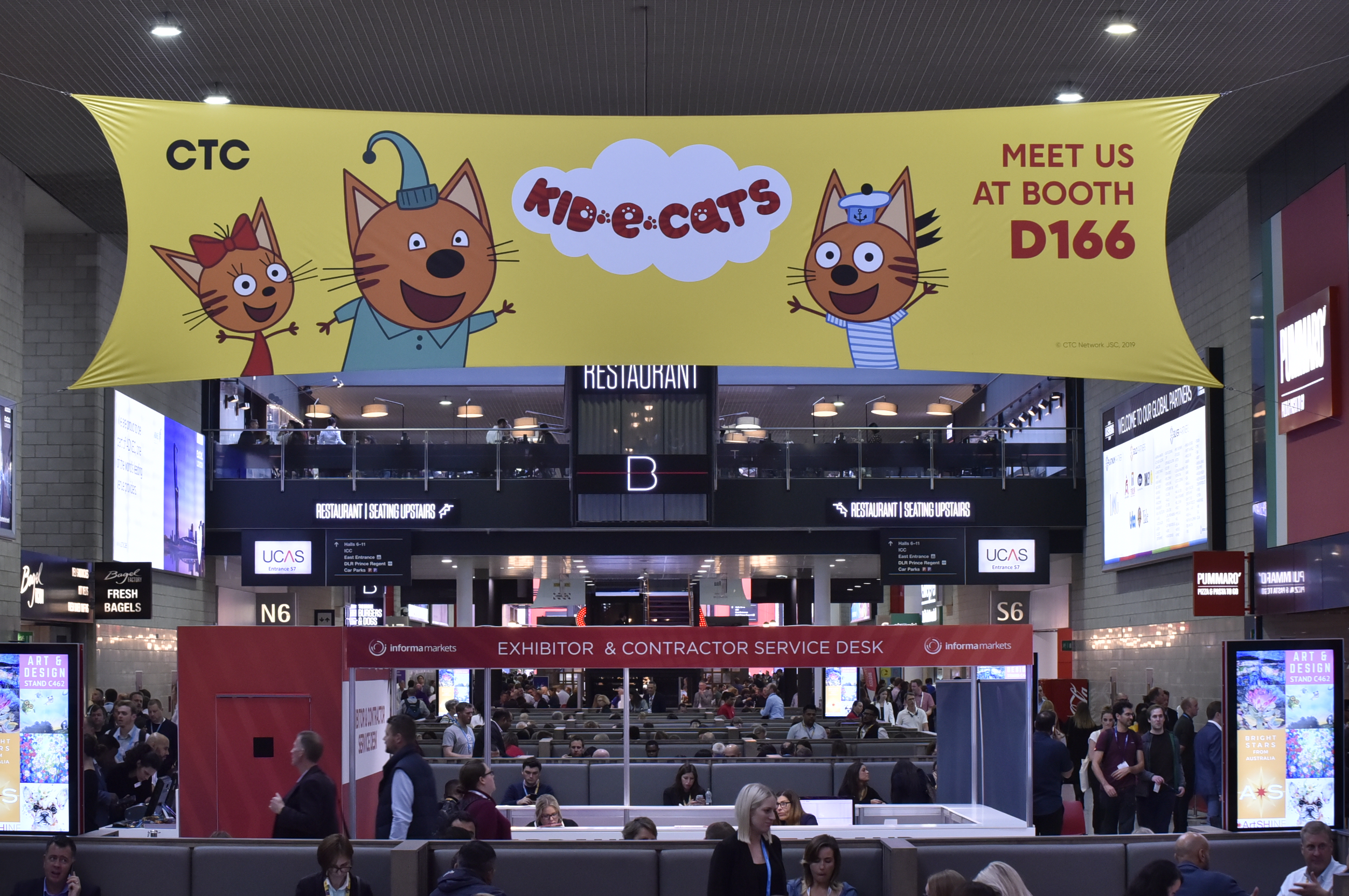 Over 100 banners and posters sold with digital screens on the DLR walkway and in the main Boulevard